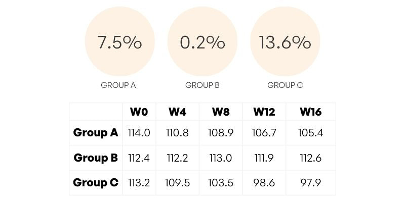 Group A, receiving the lower dosage of Altrient C, showed progressive improvement in both skin firmness and texture. Group B, the placebo group, exhibited no significant changes throughout the study period. Group C, which received the high dosage of Altrient C at 3000mg daily, exhibited the most substantial improvements. Results for groups A and C piqued at week 12, only marginally improving in the final four weeks of the study.