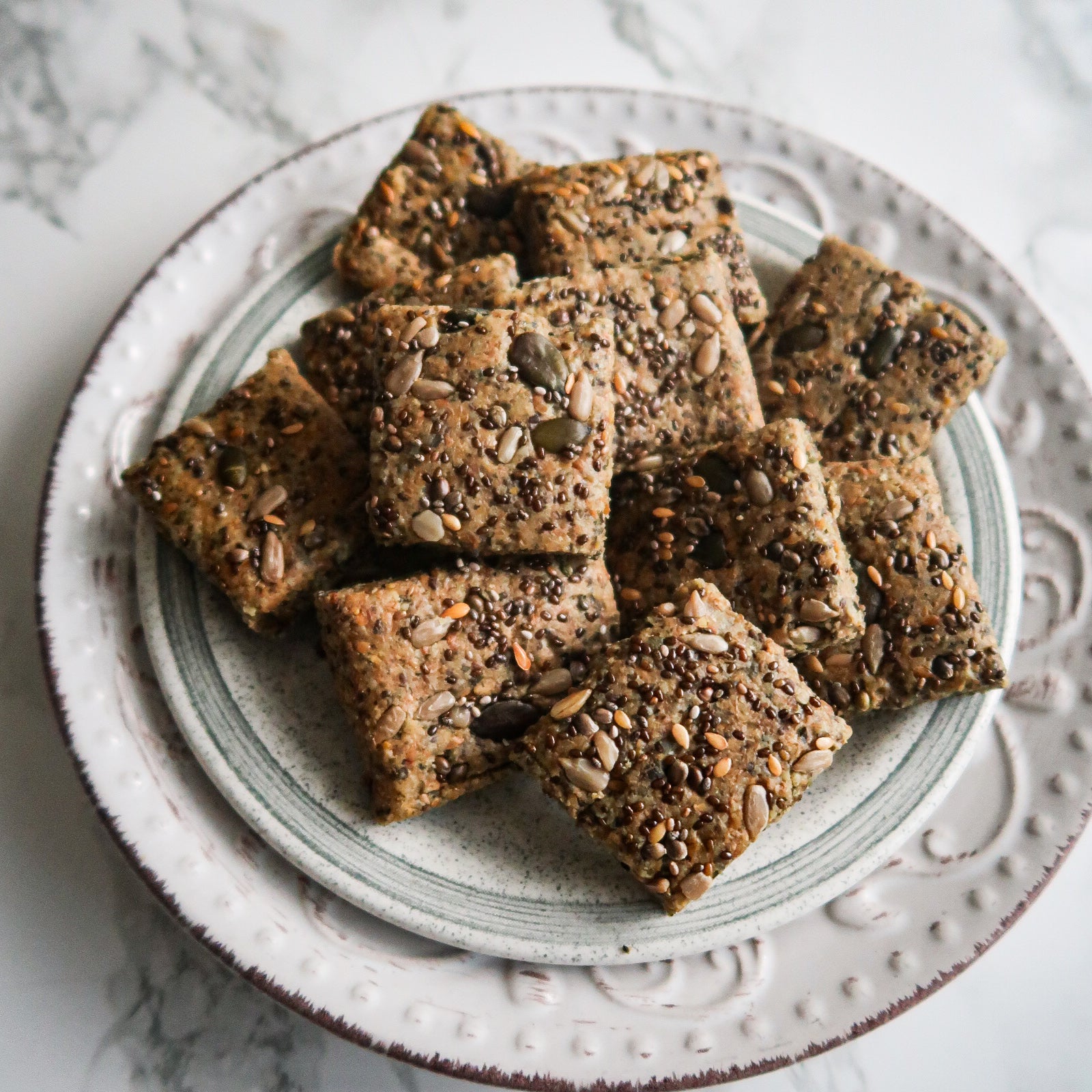 Tabla de pastoreo de primavera cetogénica con galletas caseras con semillas